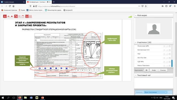 10 июля 2020 года Региональным центром ПМСП Калининградской области организована и проведена очередная онлайн-встреча для сотрудников медицинских организаций на тему «Реализация проектов по улучшению с использованием методов бережливого производства в медицинской организации». В онлайн-встрече приняли участие 18 специалистов из медицинских организаций Калининградской области. В ходе онлайн-семинара прошло обсуждение типовых этапов реализации проектов по улучшению в медицинских организациях. Были рассмотрены методы сбора анализа данных для выявления существующих проблем.